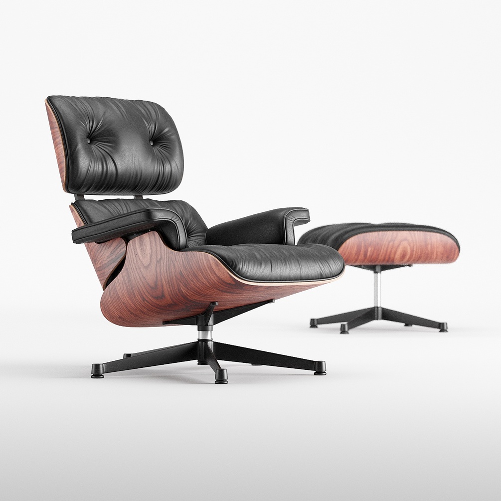 LOUNGE CHAIR & OTTOMAN - Pro Quality 3D Model + Exports